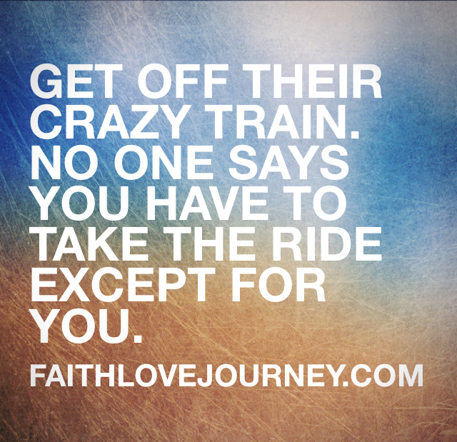 What’s a crazy train? A crazy train is a metaphorical ride that crazy makers (people who just drive you insane) take you on. It’s purely emotional. They are oh so good at getting you to join in on their ride. They will, if you allow them, drive your emotions, your actions, your reactions, and suck the energy right out of you.